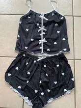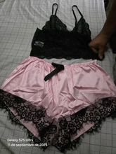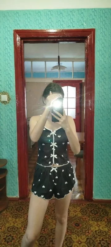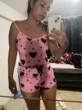 pijamas muito fofos!! Tecido super agradável, os shorts podem parecer um pouco transparentes, mas nada se mostra através deles, conjunto tamanho Barbie, recomendo muito :3 chegou rapidamente e foi embalado em uma embalagem organizada e intacta, mesmo que a figura seja em forma de pêra e os quadris com coxas sejam tamanho M, serviu perfeitamente tanto no top quanto no bottom. Meninas, não tenham medo de encomendar,chegou tudo em perfeito estado.